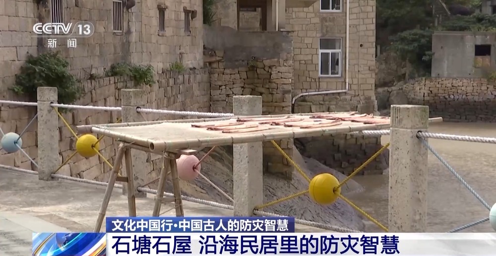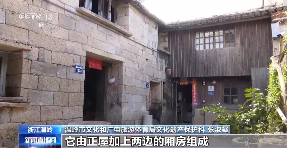 温岭市文化和广电旅游体育局文化遗产保护科 张淑凝:这个民居是我们石塘特有的建筑,就是石屋,它最大的特点就是外墙全是用块石砌筑的,都是花岗岩,在防御台风的时候非常地有优势,因为它比较坚固。像利奇马台风都超强台风17级的,它都岿然不动。