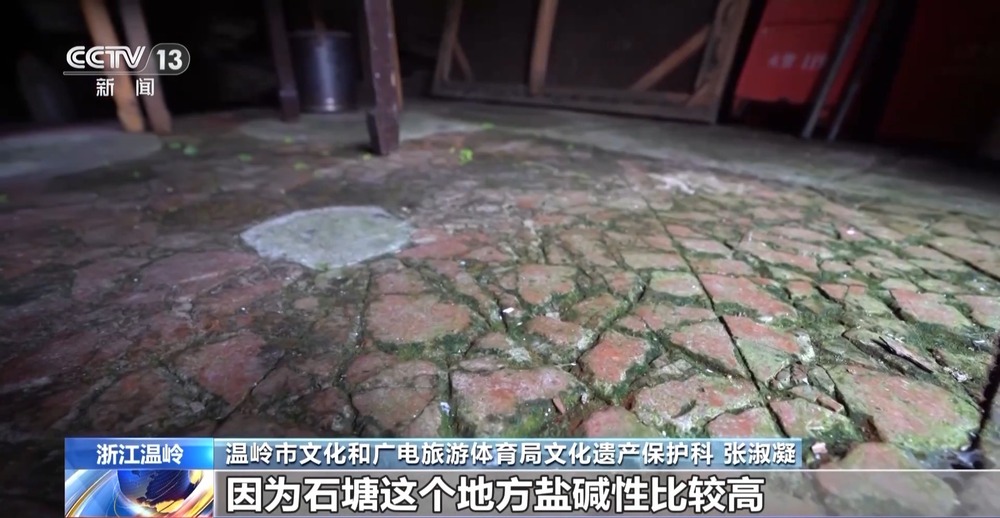 温岭市文化和广电旅游体育局文化遗产保护科 张淑凝:这块它的铺地就比较有特色,在中间相当于甬道这一块,铺了福建的胭脂砖。因为石塘这一个地区盐碱性比较高,烧不出这样的砖来,所以它们大部分都是作为装饰来用。